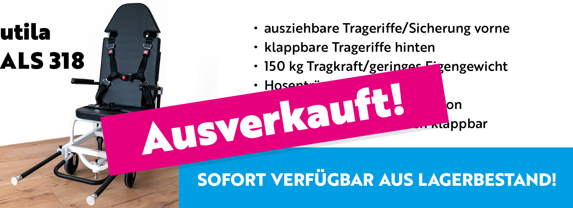 Der leichte Tragestuhl utila ALS 318 wiegt nur 18,5 kg und ist bis 150 kg belastbar. Das erleichtert die tägliche Arbeit für das Rettungsdienstpersonal enorm.